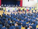 全学年が体育館に集合して部活動壮行会を行いました。はじめに、吹奏楽部の演奏を聴い...