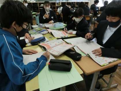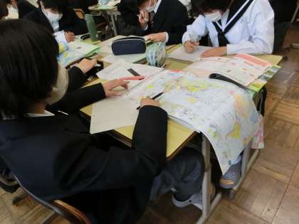 1年2組の社会・地理分野の授業の様子です。