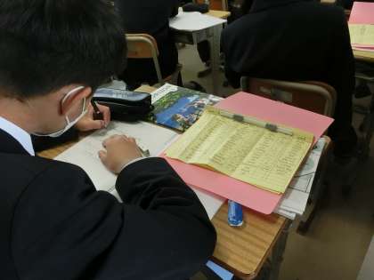 教科書に記された単元の内容を確認する学習に取り組んでいました。