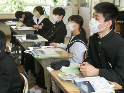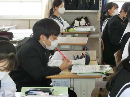 2年1組の社会・地理分野の授業の様子です。