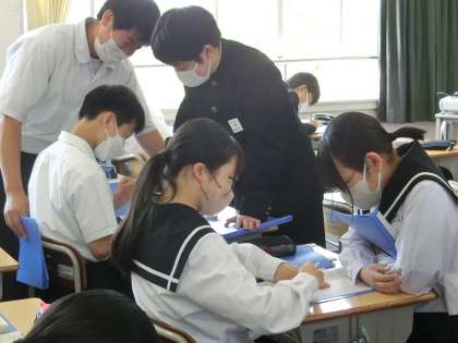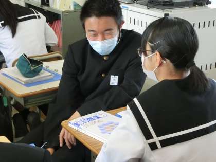 仲間や教科担任からアドバイスをもらいながら、一生懸命問題にあたっていきます。確実に身につくよう努力してほしいと思います。