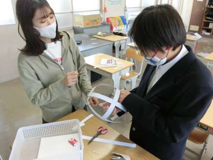 自分の顔や頭のサイズに合うように何度も微調整をしたり、取り付けの際にけがをしないように金具を丁寧に処理したりしていました。細かな部分まで気を配っての活動の様子に感心しました。