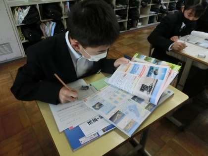 1年3組の社会・地理分野の授業の様子です。