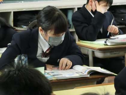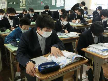 1年3組の社会・地理分野の授業の様子です。