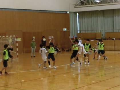 昨日、高岡公園体育館で行われた男子ハンドボール部の合同練習会(練習試合)の様子です。