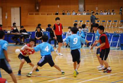 本日、豊田市運動公園体育館で行われた男子ハンドボール部の交流戦の様子です。