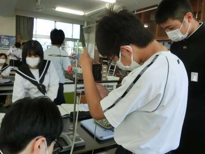 グループで役割を分担し、実験の手順をしっかり確認したあと、協力して取り組んでいました。