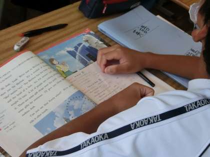 「会話としてはあまり文法は気にしなくてもいいから、思ったことをどんどん口にしていこう」と話す教科担任の言葉が印象的でした。また、「ただ、みんなには近々入試というものがあります。そのためにも正しい文法は身につけておきましょう」とも話されていました。