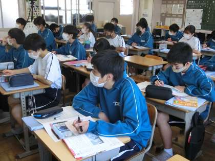 「会話としてはあまり文法は気にしなくてもいいから、思ったことをどんどん口にしていこう」と話す教科担任の言葉が印象的でした。また、「ただ、みんなには近々入試というものがあります。そのためにも正しい文法は身につけておきましょう」とも話されていました。