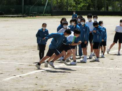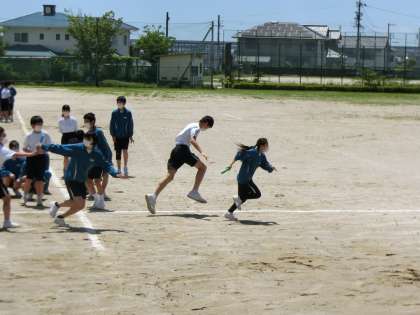 体育祭の競技種目であるリレーの練習が行われていました。
