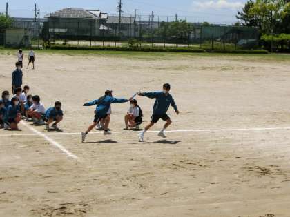 体育祭の競技種目であるリレーの練習が行われていました。