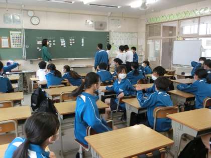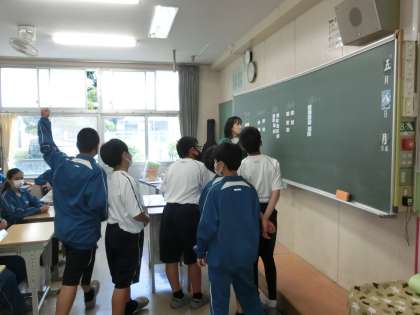 2,3年生が運動場での練習に繰り出す中、1年生は体育祭に向けての目標を決めていました。また、各種目の選手の選出やルール確認等が行われていました。