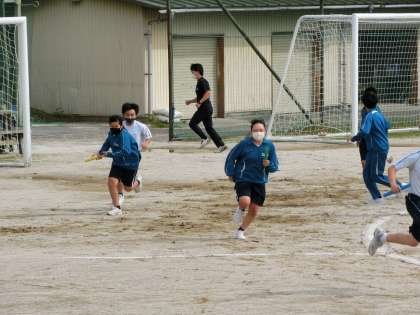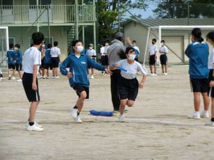 どのクラスも運動場に繰り出し、長縄とびや学年種目の練習が行われていました。後半は、リレーの練習も行われ、注目を集めていました。