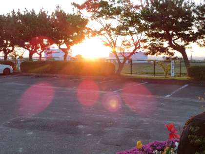 高岡中学校から見える朝日は、本当にきれいに見えます。周りに遮る高い建物などがないからです。また、学校周りの田には苗が植えられ、朝日が映り込む水面を見ていると心が癒されます。こうした素晴らしい環境で日々生活できる高中生は、本当に恵まれていると思います。