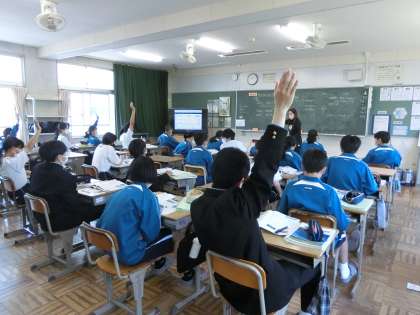 2年1組の社会・地理分野の授業の様子です。