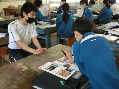 自分の感じたことをグループで発表し、お互いの考えから新たな発見をしていました。