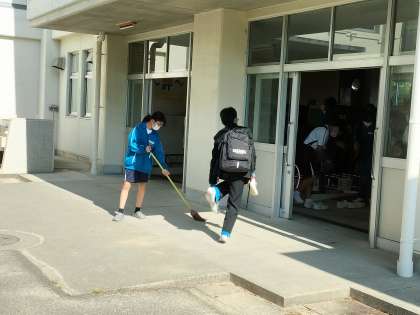 朝から生徒たちの自主的な活動が行われています。