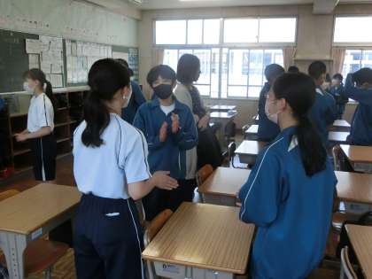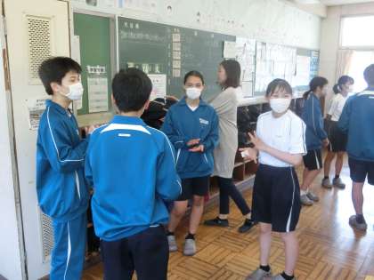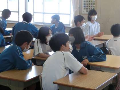 4人組になり、示されたお題で順番に発表していきます。うなずいて聴くこと・しっかり話すこと以外にも、今日は「始めと終わりのあいさつをしっかりすること」に意識をおき、活動が行われていました。