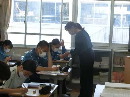 基本の文法と比べながら、1問ずつしっかりと解いていました。