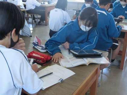 「中学生の発達に必要なエネルギー量を知ろう」をテーマに学習が進められていました。
