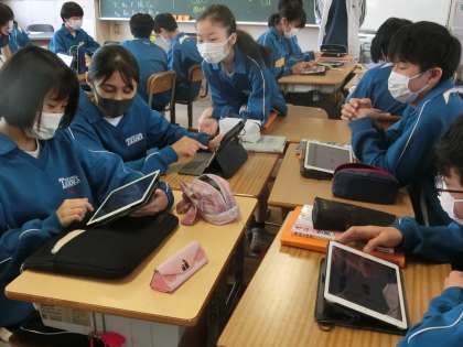 酸化の様子を化学式で表すことはできてもその逆は、単に矢印の向きを変えるだけではありません。何かしらの化学変化を起こさなければ不可能です。学習用タブレットを使ったり、仲間との意見交換をしながら、予想を立てていました。