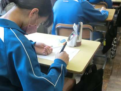 3週間余りで始まる定期テストに向けて、きれいな文字で解答を書く意識を高めていくためです。漢字の練習など、日頃から丁寧な文字を書くように心がけてほしいと思います。