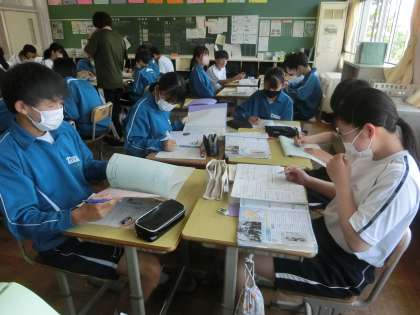 5/18 深い学びのために… 3 公開日 2023/05/18 更新日 2023/05/18 各学年から 3年5組の社会・歴史分野の授業の様子です。 「満州事変はどのように起こり、日本はどのように変わった?」というテーマで学習が進められていました。 グループでの話し合いを通して、このテーマに迫っていきます。各自が調べた内容や自分の考えを根拠にした意見を出し合いながら、まずは生徒同士でこれからの学びに向けての準備を進めています。