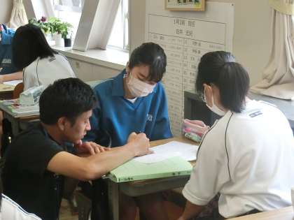 仲間や教科担任にヒントやアドバイスをもらいながら、難しい問題にも積極的に挑戦していました。