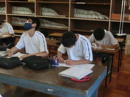 この技法を使うと機械的に奥行きのある図が完成します。仲間と確認をし合いながら、今後の作品づくりに向けて技法の習得に励んでいました。
