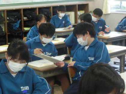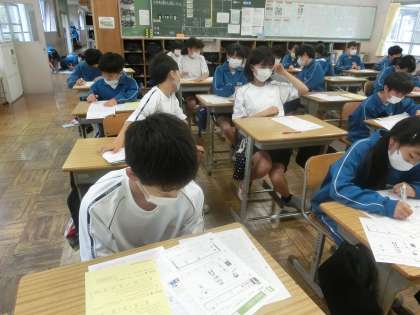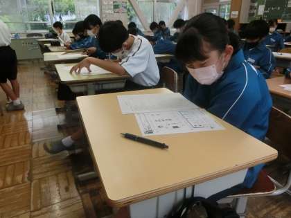 単元テストが返却され、見直しを行っていました。