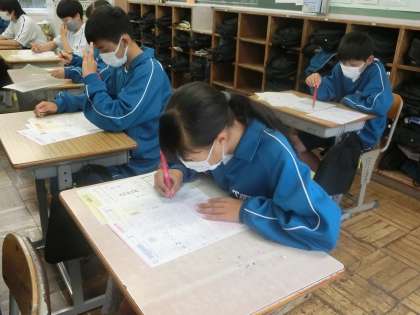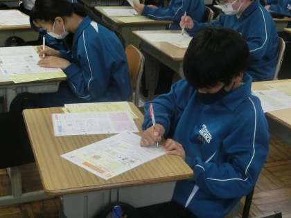 単元テストが返却され、見直しを行っていました。