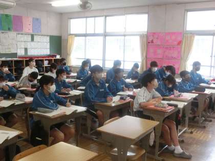 現代語ではない言葉の意味を調べたり、どのような情景かを推測していきます。自分の考えを仲間に伝えたり、教科担任の説明を聞いたりして状況をイメージしていました。