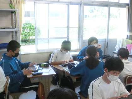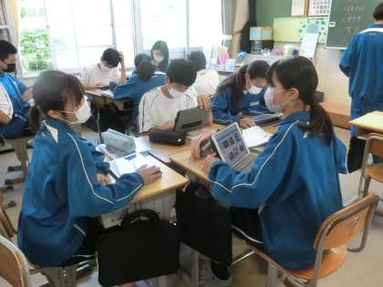 タブレットで調べたり、仲間のアドバイスをもらったりしながら、真剣に取り組んでいました。