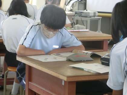 今後の課題となる「今の自分に必要な栄養素をまとめよう」のレポート作成に向けて、真剣にテーマと向き合っていました。