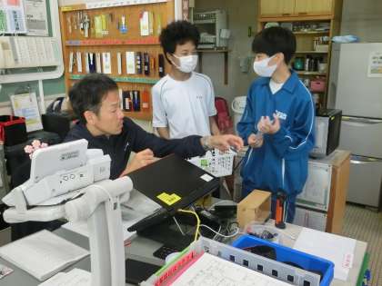 これまでに時間に作成したコースターやアイロンビーズの作品を職員室で販売しています。今回は、ポイントカードやそれに貼るシールも登場し、そのすべてが手作りでした。