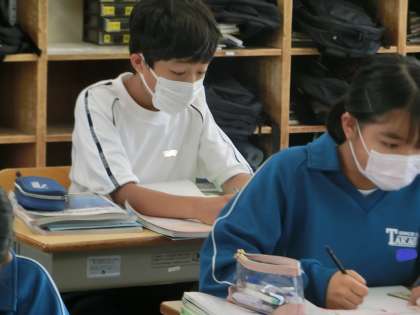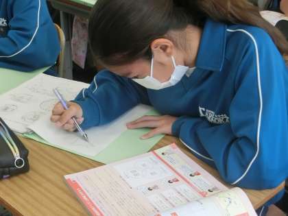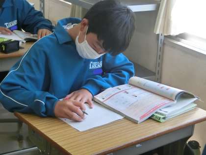 白地図に都道府県名や県庁所在地を書き込んだり、日本地図をフリーハンドで書けるように練習しています。「先生のように日本地図が描けるようになりたい」と一生懸命練習していました。