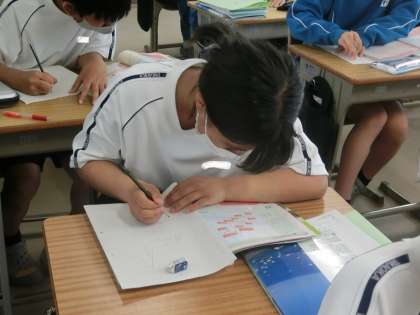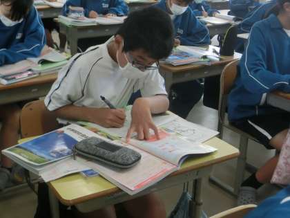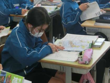 白地図に都道府県名や県庁所在地を書き込んだり、日本地図をフリーハンドで書けるように練習しています。「先生のように日本地図が描けるようになりたい」と一生懸命練習していました。