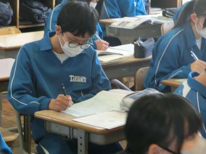 3年3組の社会・歴史分野の授業の様子です。