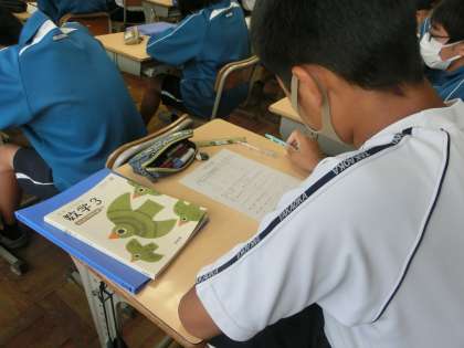 「√(根号・ルート)」という新しい概念を学んでいきます。初めて習う内容に、気持ちも新たに取り組もうという雰囲気が伝わってきました。