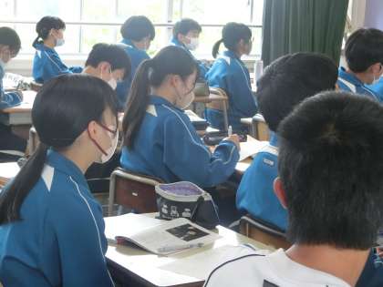 「希望と勇気、克己心(自分に打ち勝つ心)と強い意志」がテーマであった今回の授業。先週行われた体育祭を振り返りながら、吉田選手の心情を考えたり、今後の自身のより良い生き方に思いを馳せていました。