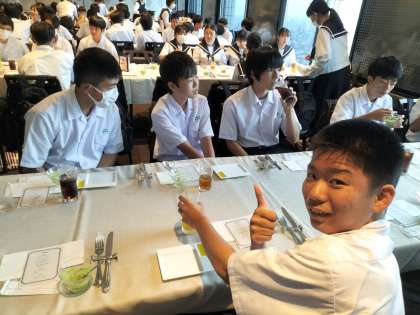一日の活動を振り返りながら、仲間との話で盛り上がりました。給食でも、まだまだ話をしながらの会食はしていません。その分、楽しく会話をしながら会食する生徒の様子は、とても新鮮に感じました。