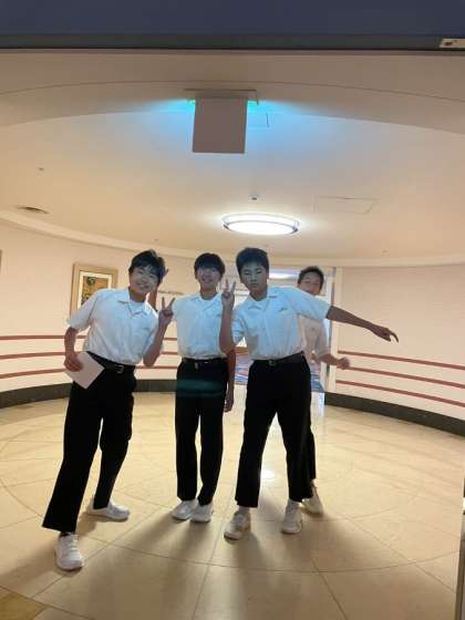 昨晩過ごしたホテルの部屋の快適さと今日の活動への期待感が表情に現れています。