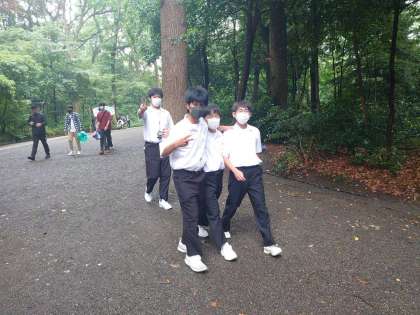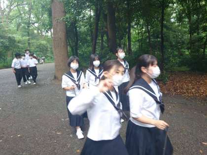 2日目、午前中の活動である『企業訪問』・ユニセフ組が訪問前に明治神宮に立ち寄った時の様子です。