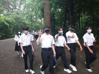 2日目、午前中の活動である『企業訪問』・ユニセフ組が訪問前に明治神宮に立ち寄った時の様子です。