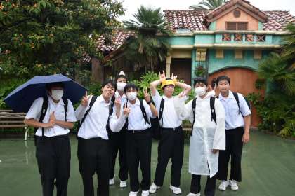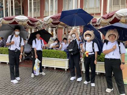 雨が降っていますが、すでに生徒たちには関係なさそう。