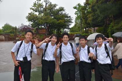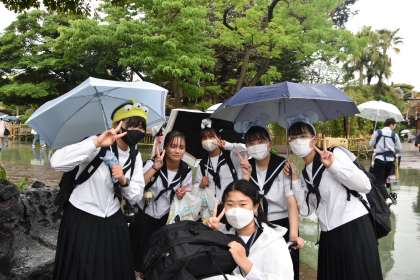 雨が降っていますが、すでに生徒たちには関係なさそう。