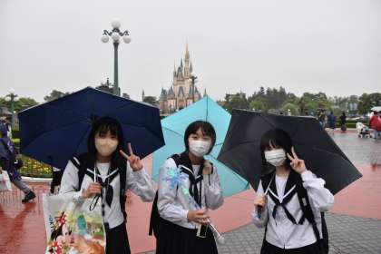 雨が降っていますが、すでに生徒たちには関係なさそう。