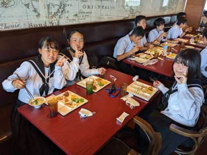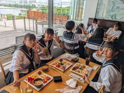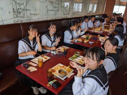 写真は、ビュッフェ形式で昼食を楽しむ1組です。
