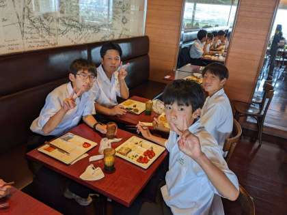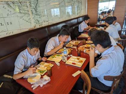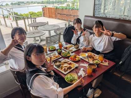 写真は、ビュッフェ形式で昼食を楽しむ1組です。