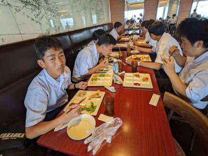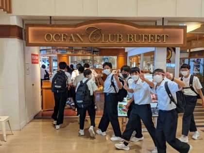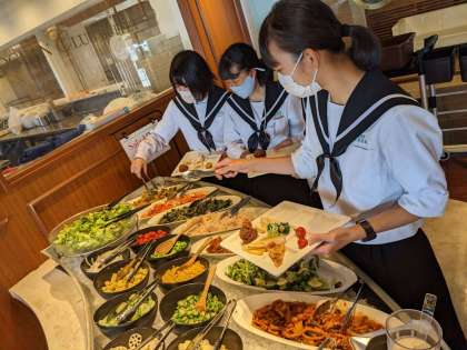 写真は、ビュッフェ形式で昼食を楽しむ1組です。